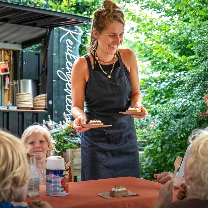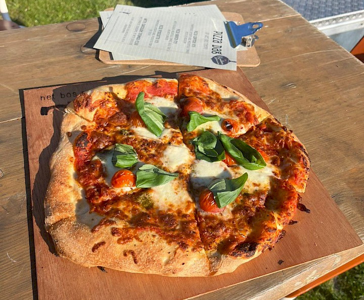 In de zomervakantie serveren we drie soorten ovenheerlijke pizza's en desserts vanuit onze foodcorner Keukengeheimen (tegenover het sanitairgebouw). Zowel de pizzabodems als de toppings worden ter plekke door ons bereid! De pizza's en toetjes hoeven niet vooraf te worden besteld, je kunt bij onze Keukengeheimen komen aanwaaien tussen 17:00u. en 20:00u. Neem gezellig plaats op ons 'Keukengeheimen terras' of neem je bestelling gerust mee naar jouw kampeerplek of accommodatie.