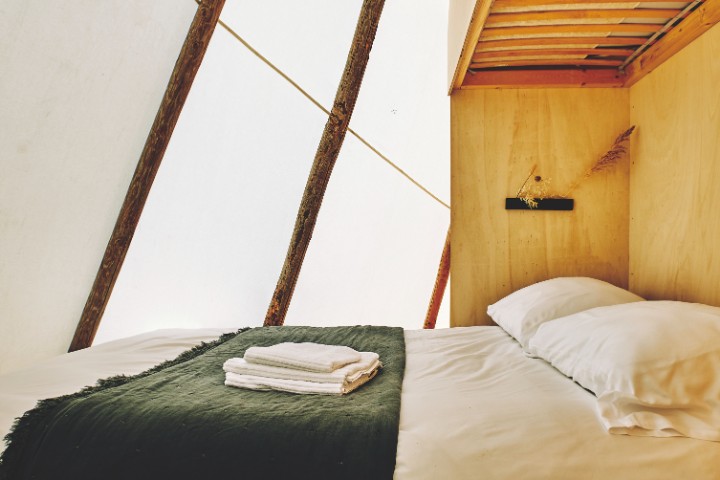 In Tipitent Roos kun je in comfort komen overnachten. Het tweepersoonsbed en de twee 1-persoonsbedden zijn bij aankomst voor je opgemaakt en zijn voorzien van elektrische dekens (lekker voor de koudere nachten). Het toilet en de douche zijn op loopafstand in het gezamenlijke sanitairgebouw.