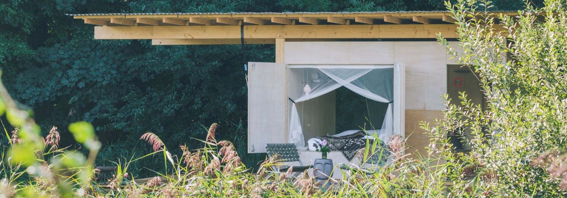 De trekkershut is ontworpen door architect Ninja Zurheide. De bijzondere- maar simpele constructie van de trekkershut zorgt ervoor dat je comfortabel kunt overnachten in de terkkershut. Al onze accommodaties zijn trouwens natuurgetrouw en zo veel mogelijk circulair ontworpen en gebouwd. Wil je meer weten over uniek overnachten bij ons op het bos roept? Lees dan hier verder..