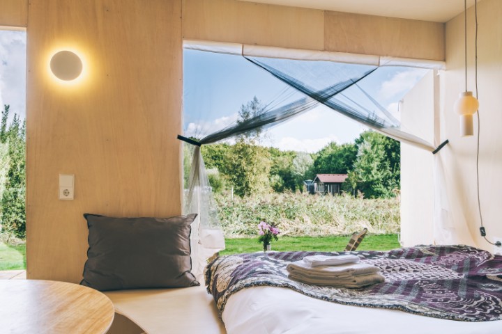 Je kunt al vanaf 1 nacht overnachten in onze trekkershutten. Ben je op doortocht? Of zoek je een comfortabele- maar basic overnachting in de kop van Noord-Holland? Van harte welkom in trekkershut Ninja. Anders dan in onze andere accommodaties, is het ontbijt niet inbegrepen bij een verblijf in één van onze trekkershutten. Vers brood, croissantjes, zuivel en kaas van de zorgboerderij en lekkere sappen van Schulp kun je wel voor de volgende ochtend apart bestellen in onze receptie.